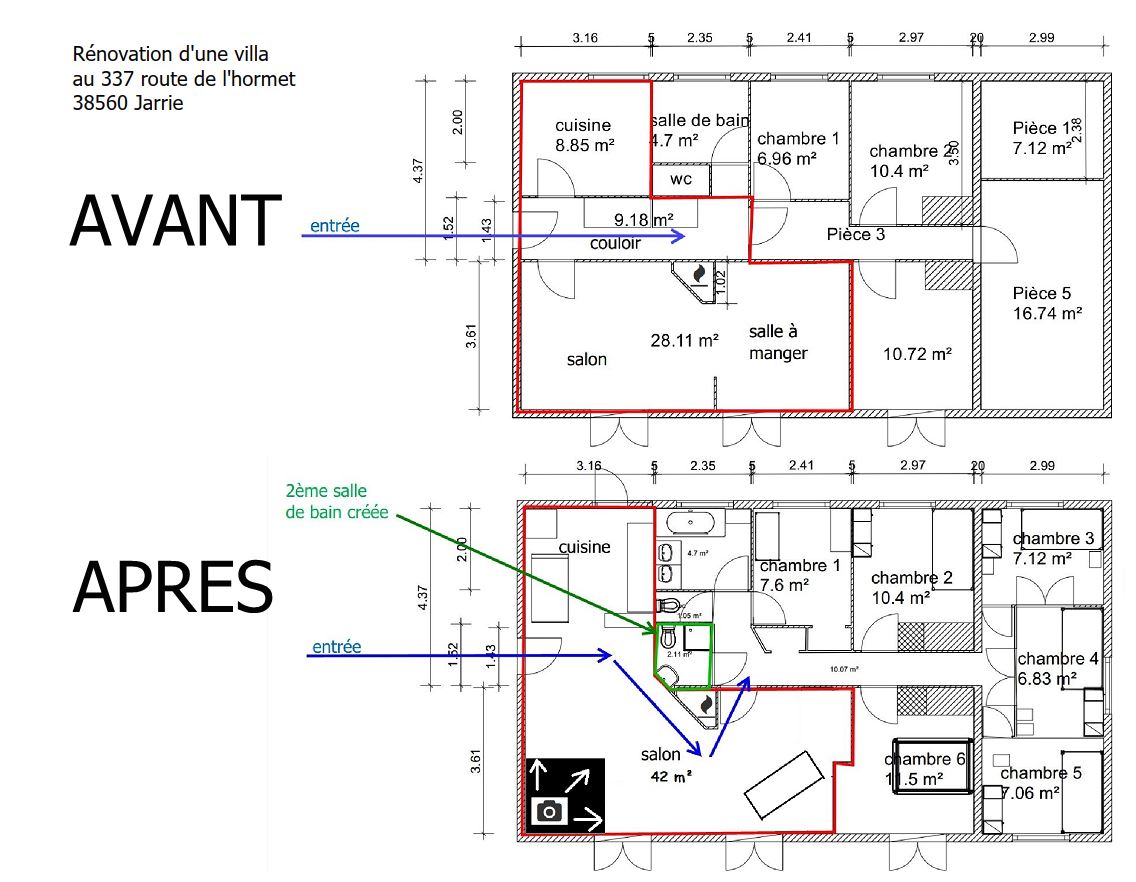 Nous calculons toutes les surfaces, SRT surface Réglementation Thermique, surface projetée du bâtiment... et surtout la surface de plancher avant et après projet. Cette dernière est incontournable pour déterminer le cadre juridique, administratif et fiscal (exemple : le taux de tva lié à un extension de moins de 9m² est de 10% (et non 20%) à condition de ne pas augmenter la surface de plancher existante de plus de 10%).