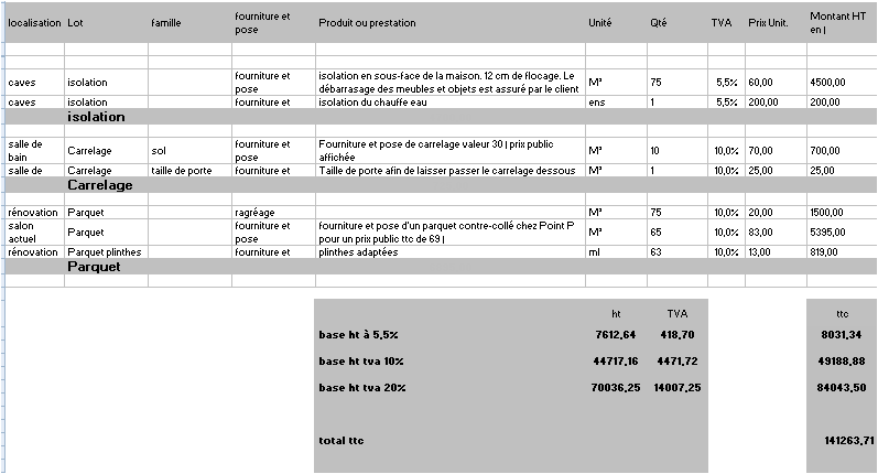 Cliquez ici pour voir la fabrication d'un budget.Détermination du taux de tva qui peut varier selon les prestations de 5.5% à 10 % ou 20%.