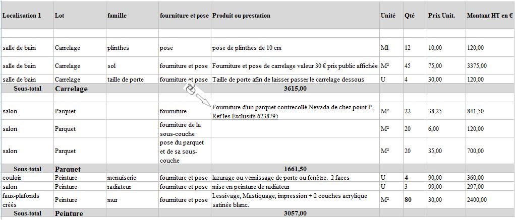 Il s'agit d'une traduction technique et quantifiée des plans qui permet aux entreprises de réaliser leur devis :